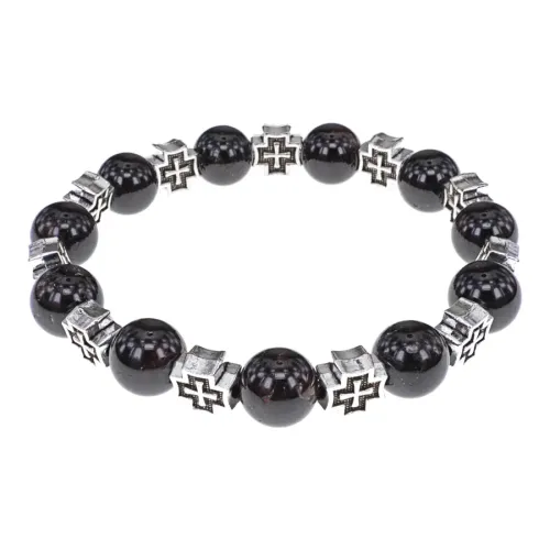Браслет с крестами, Гранат, 10мм BSHE-16-06
