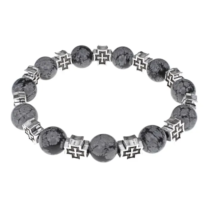 Браслет с крестами, Снежный обсидиан, 10мм BSHE-16-14