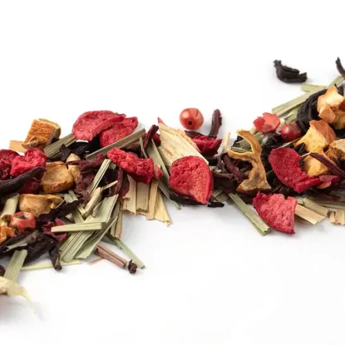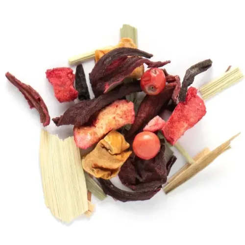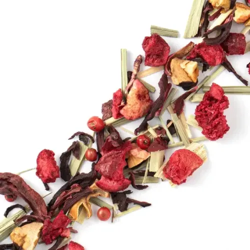 Состав: каркаде, яблоко, цедра апельсина, лимонная трава, кусочки вишни, перец розовый горошек, аромат вишни.