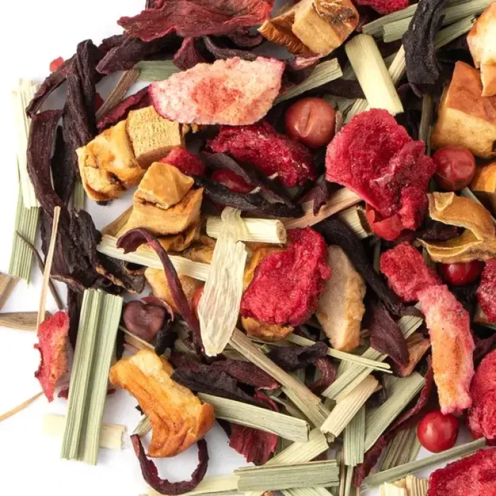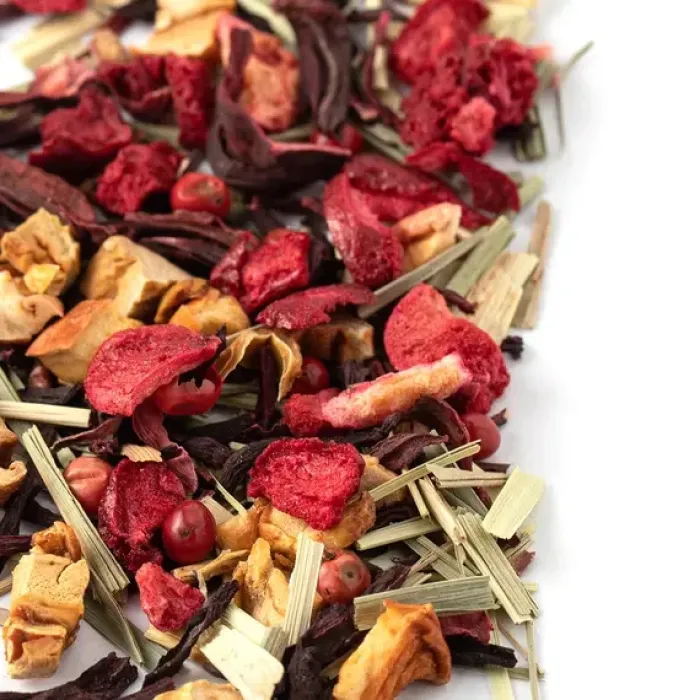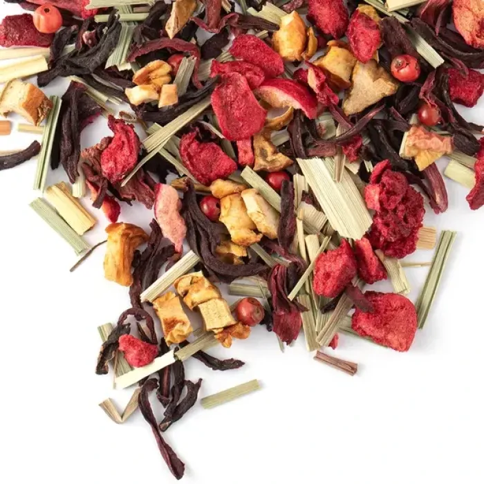 Вкус: Насыщенный фруктово-ягодный с кислинкой каркаде, нотами яблока, цитрусовой цедры и лёгкой пряностью розового перца