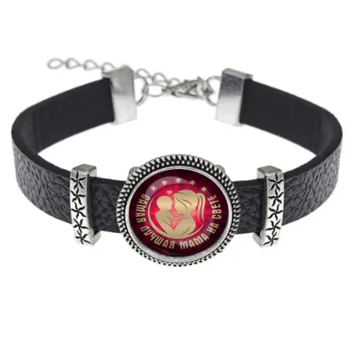 Кожаный браслет с надписью 'Самая лучшая мама на свете' — идеальный подарок для самых дорогих людей. Этот стильный аксессуар выполнен из качественной кожи и дополнен металлическими элементами, что придаёт ему особую элегантность. Изображение диаметром 18 мм защищено выпуклой стеклянной линзой, что обеспечивает долговечность и яркость дизайна. Регулируемый размер позволяет носить его на любой руке, а упаковка в прозрачный пакет делает его готовым к подарку. Такой браслет станет символом любви и заботы в любой ситуации.