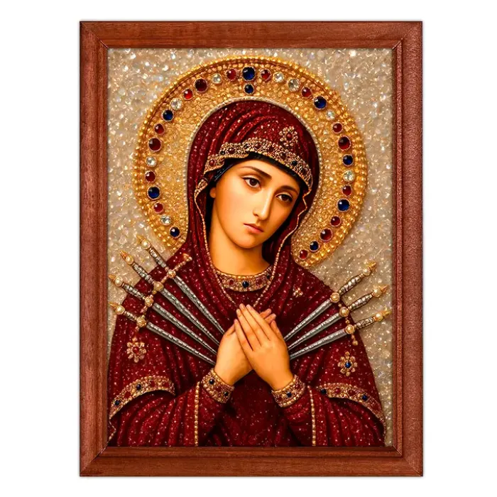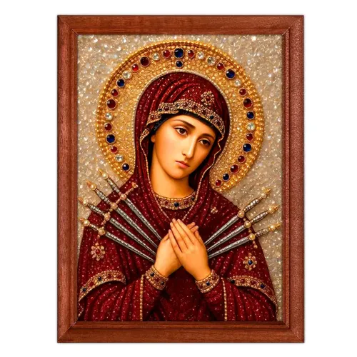Постер в рамке с изображением Богородицы Семистрельной — это не только элемент декора, но и символ духовности и защиты. Этот постер станет прекрасным подарком для тех, кто ценит религиозные традиции.