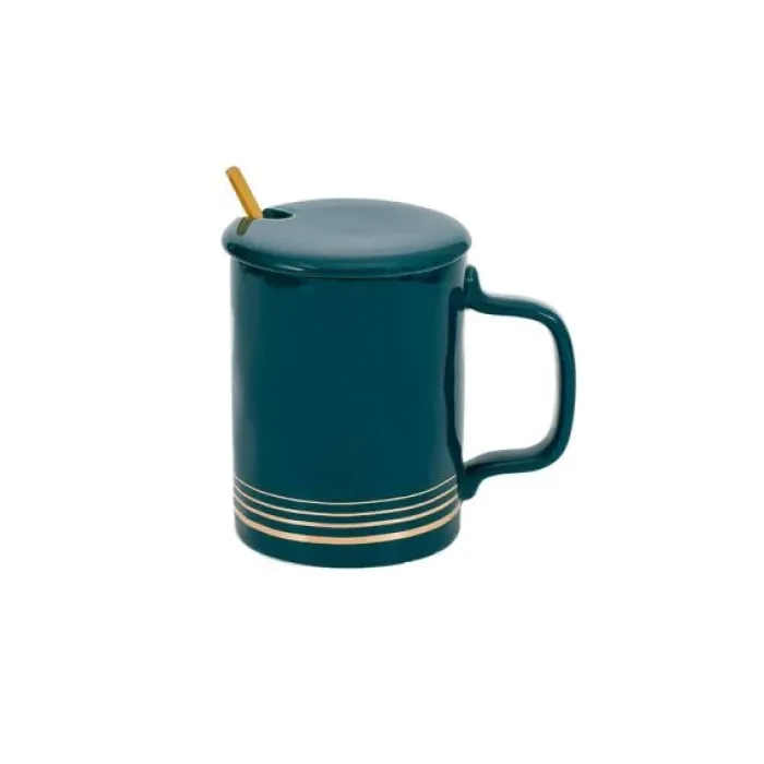 Фарфоровая кружка с ложкой и крышкой Business Time /1, зеленая 400 мл