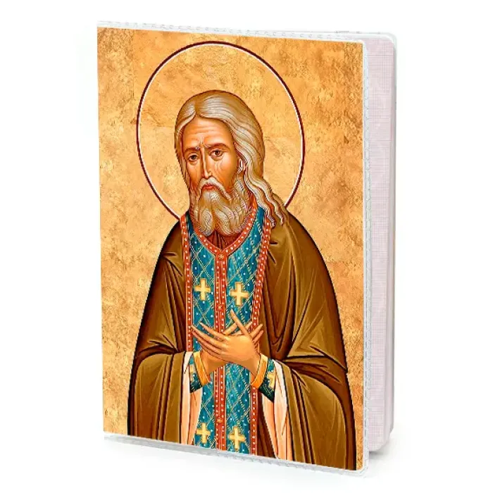 Обложка для паспорта, украшенная изображением Серафима Саровского, станет не только практичным аксессуаром, но и символом духовной защиты. Изготовлена из прозрачного ПВХ-пластика, она надежно защитит паспорт от повреждений и загрязнений. Полиграфическая вставка с изображением святого придаёт изделию уникальность и эстетическую привлекательность.