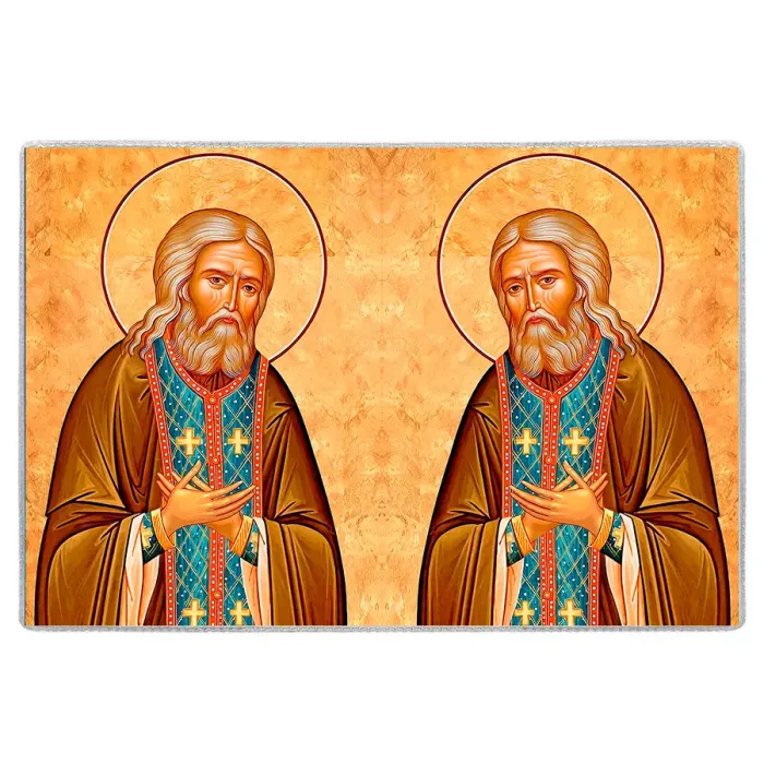 - Эстетичный дизайн с изображением Серафима Саровского создаёт атмосферу благочестия.