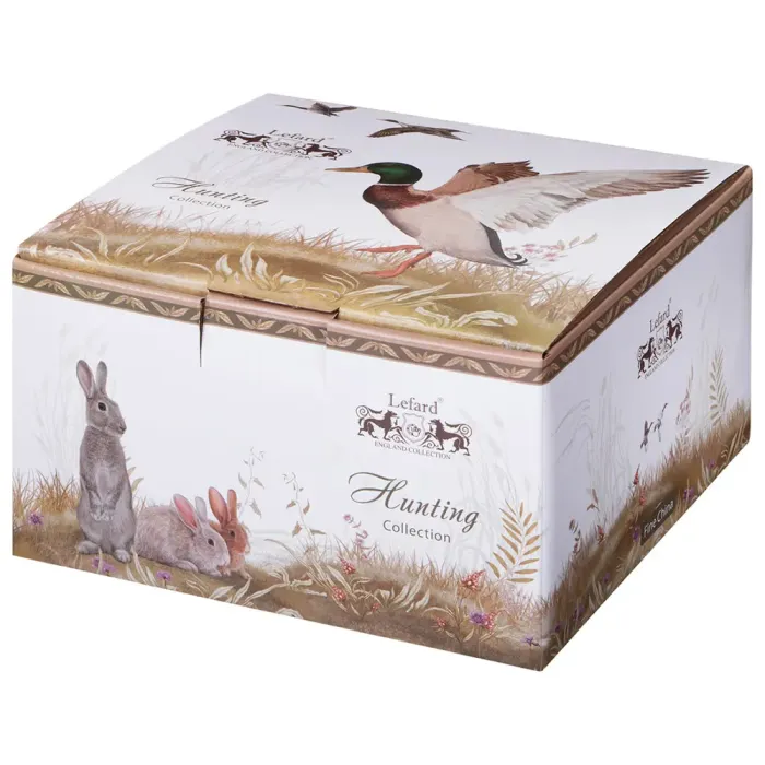 Посуду можно комбинировать с другими предметами из коллекции «Охота». Набор подходит для повседневного использования благодаря простоте ухода. Дизайн с природными мотивами сочетается с классическими и кантри-стилями интерьера.