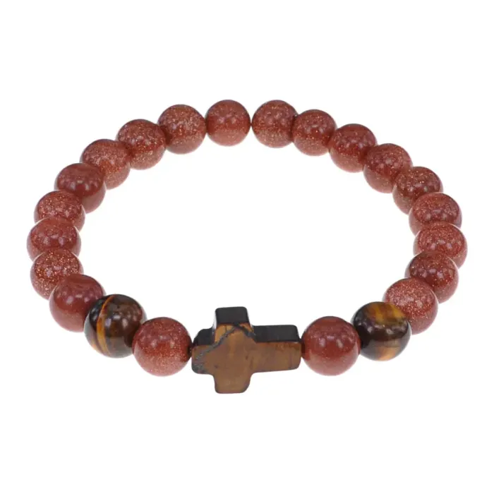 Браслет с крестом из Тигрового глаза, Коричневый авантюрин, 8мм BSH-17-01