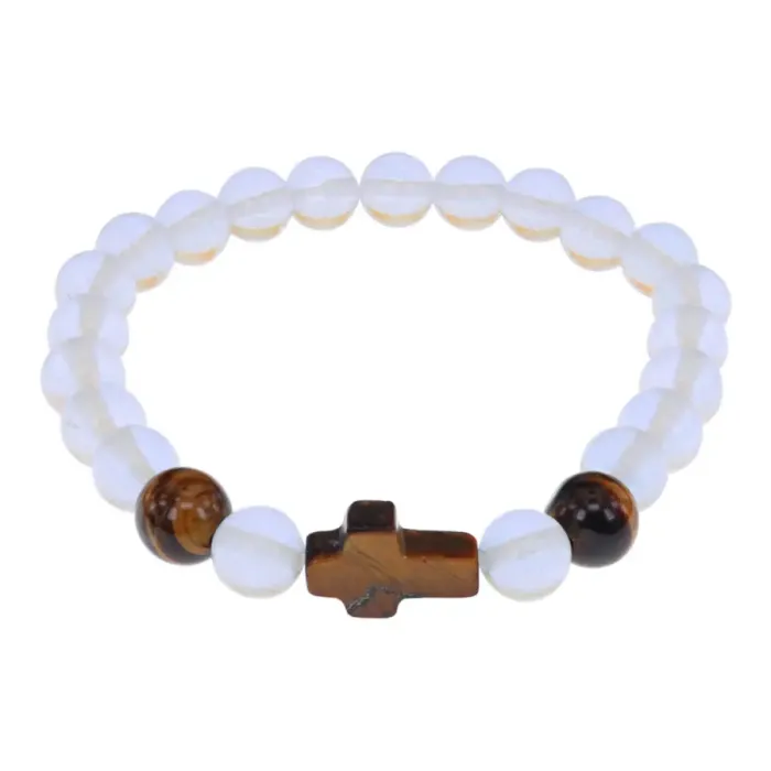 Браслет с крестом из Тигрового глаза, Лунный камень, 8мм BSH-17-11