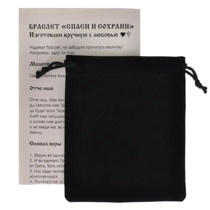 Православный стрейч-браслет с бусинами из синтетического лунного камня и натурального тигрового глаза. Этот аксессуар не только украшает, но и символизирует защиту и духовную силу. Внутренний диаметр браслета составляет примерно 5,5 см, а диаметр бусин — 8 мм. Крест размером 1х1,5 см добавляет особый смысл этому изделию. В комплекте имеется буклет с описанием значений натуральных камней в православной традиции.