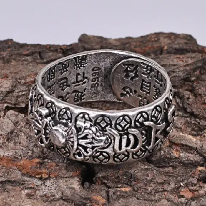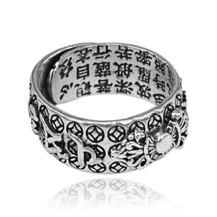 Безразмерное кольцо Ваджра шириной 9 мм — сувенирный аксессуар из металла с дизайном, сочетающим элементы восточной культуры.