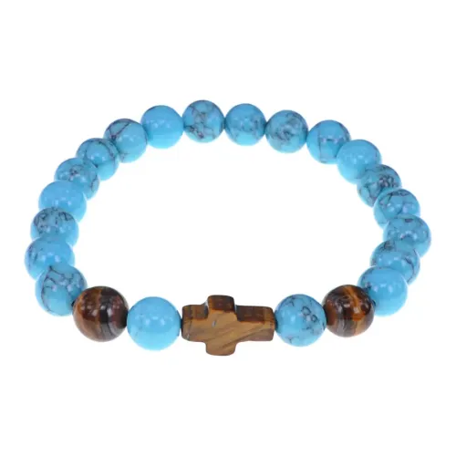 Браслет с крестом из Тигрового глаза, Бирюза, 8мм BSHE-17-05