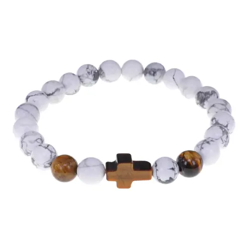 Браслет с крестом из Тигрового глаза, Кахолонг, 8мм BSHE-17-07