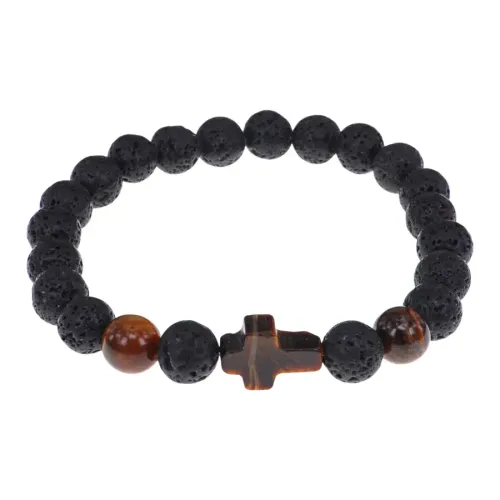 Браслет с крестом из Тигрового глаза, Лава, 8мм BSHE-17-09