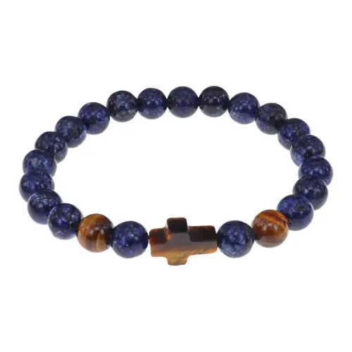 Браслет с крестом из Тигрового глаза, Лазурит, 8мм