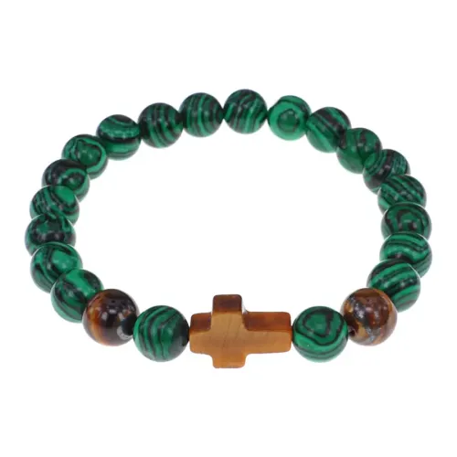 Браслет с крестом из Тигрового глаза, Малахит, 8мм BSHE-17-12