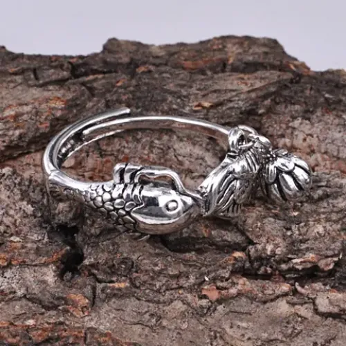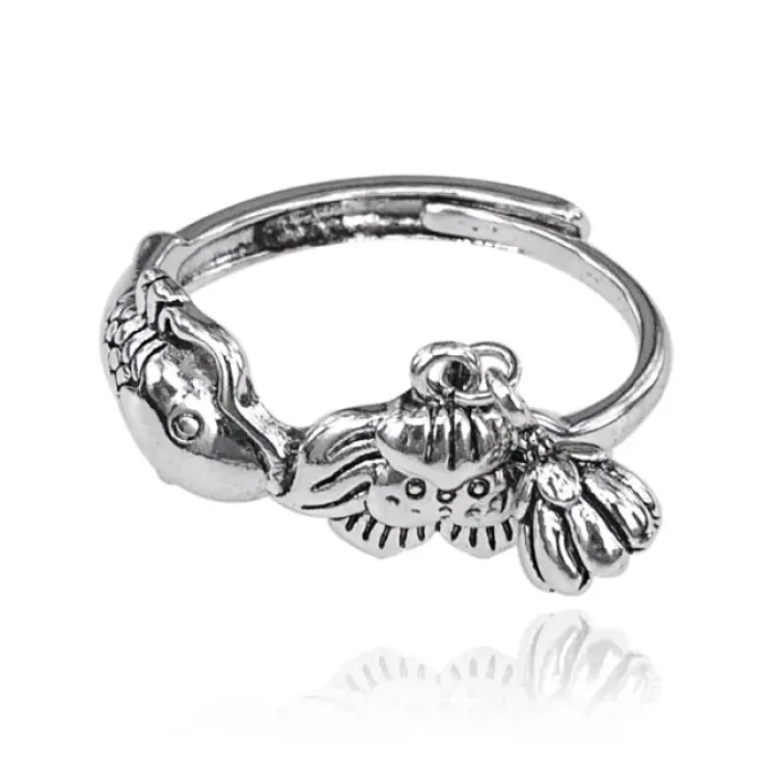 Безразмерное кольцо с дизайном «Карп и Лотос».