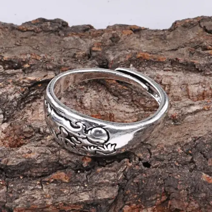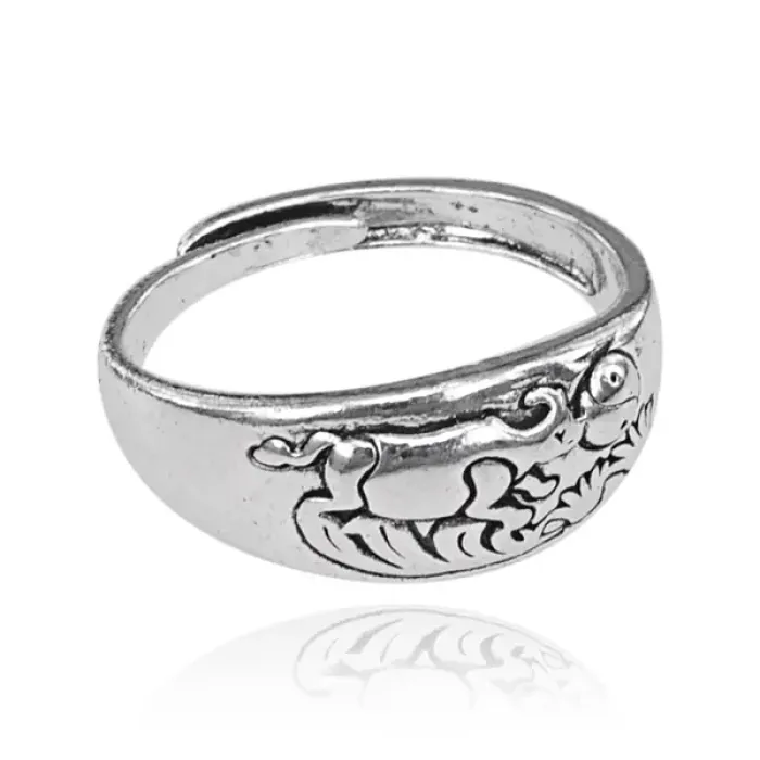 Безразмерное кольцо с символом Быка по восточному гороскопу. Изготовлено из металла с покрытием под серебро, ширина 9 мм.