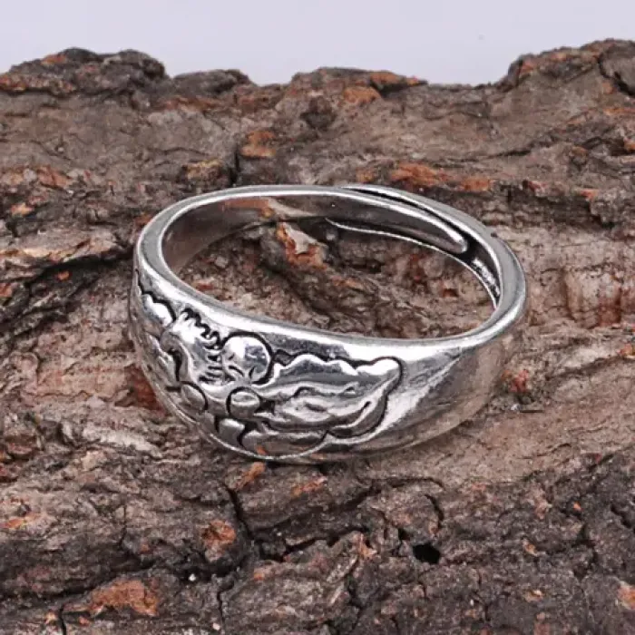 Безразмерное кольцо с символом восточного гороскопа Лошадь. Ширина 9 мм.
