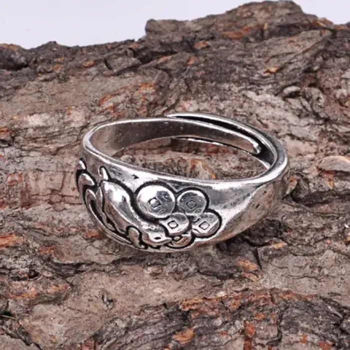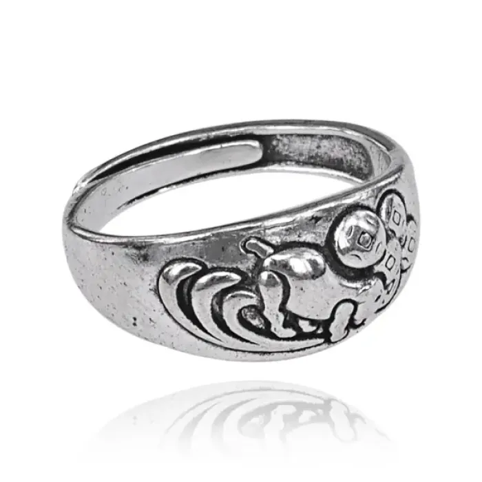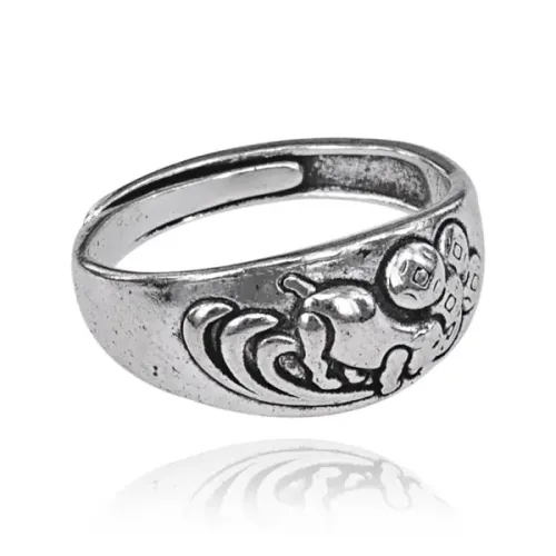 Безразмерное кольцо с символом свиньи по восточному гороскопу. Металл с покрытием под серебро, ширина 9 мм.