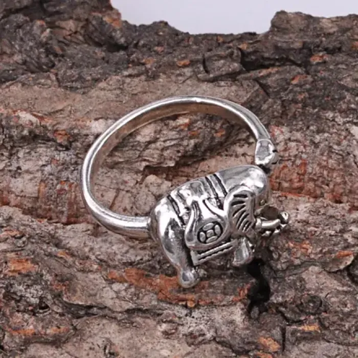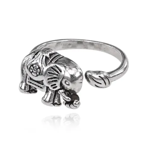 Безразмерное кольцо с фигурой слона, металл с покрытием под серебро, ширина 10 мм.