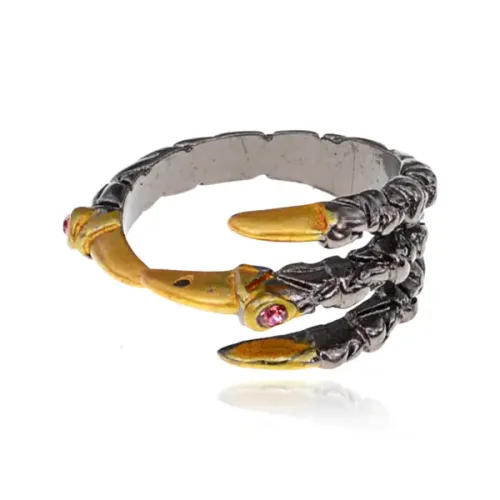 Безразмерное кольцо с дизайном «Когти орла». Изготовлено из металла с декоративными вставками из страз.