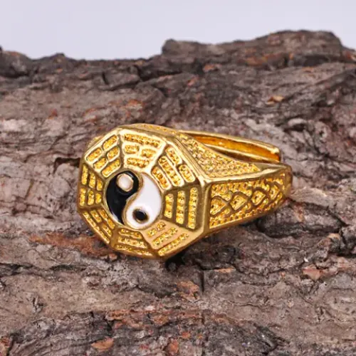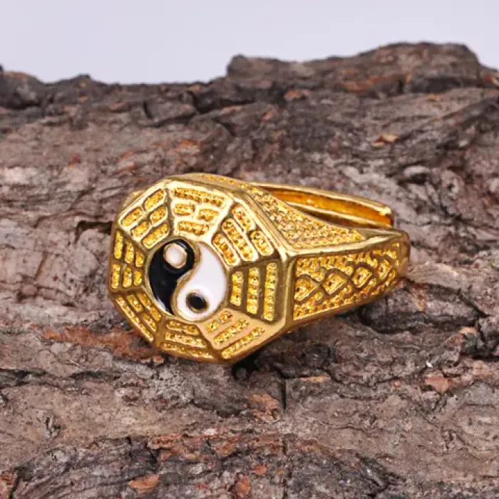 Безразмерное кольцо с символом Инь Ян, шириной 9 мм.