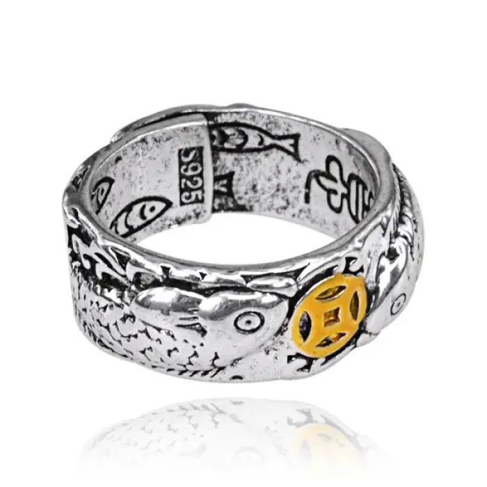Безразмерное кольцо Два карпа и монета, 8мм KL290