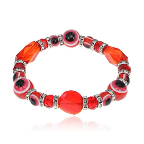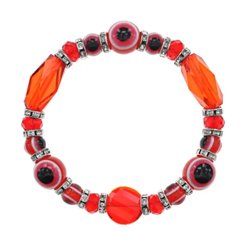 Стрейч-браслет от сглаза с декором из красных стеклянных бусин.