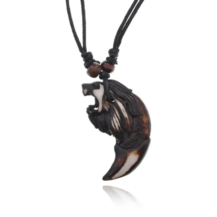 Сувенирный амулет в виде льва на шнурке с бусинами, изготовленный из пластика.