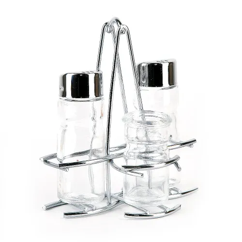 - Материал: стекло, металл- Объём солонки/перечницы: 50 мл- Количество предметов в наборе: 4 (солонка — 1 шт., перечница — 1 шт., баночка — 1 шт., подставка — 1 шт.)- Совместимость с СВЧ: нет- Мытьё в посудомоечной машине: да- Форма: цилиндр