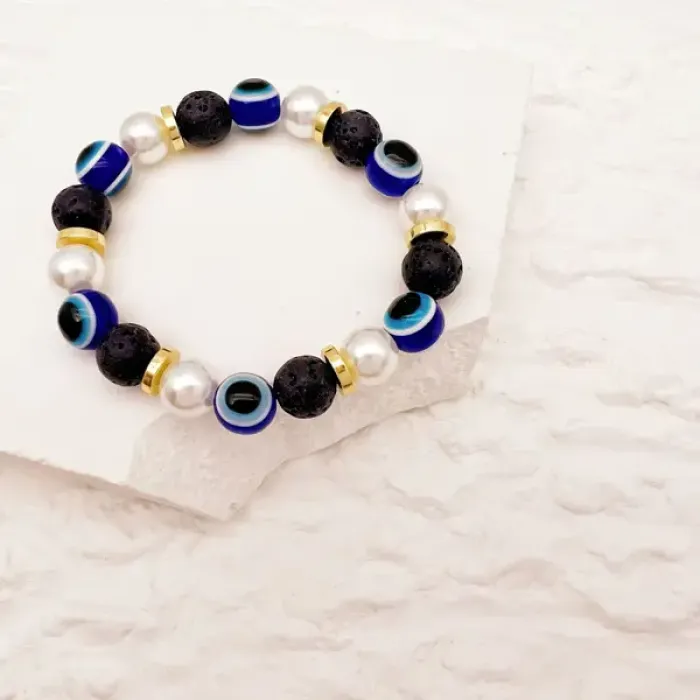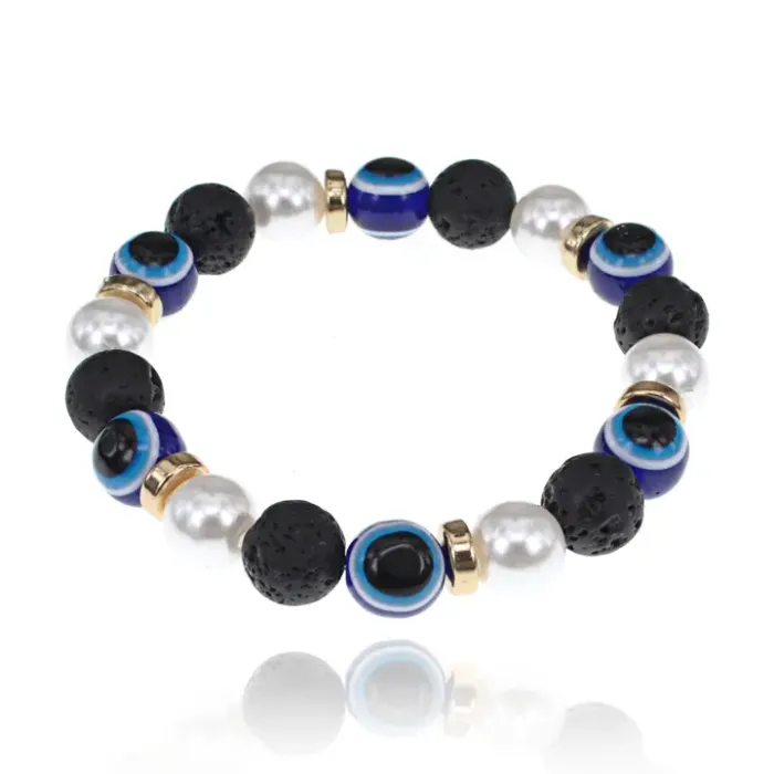 Браслет от сглаза с жемчугом и лавой, 10мм BS554