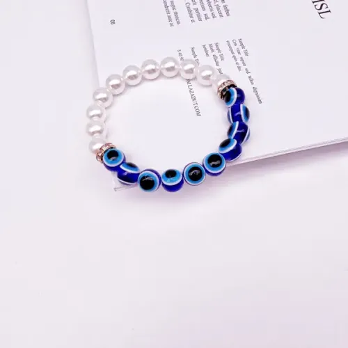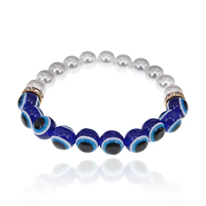 Стрейч-браслет от сглаза из искусственного жемчуга и стекла с бусинами диаметром 10 мм.