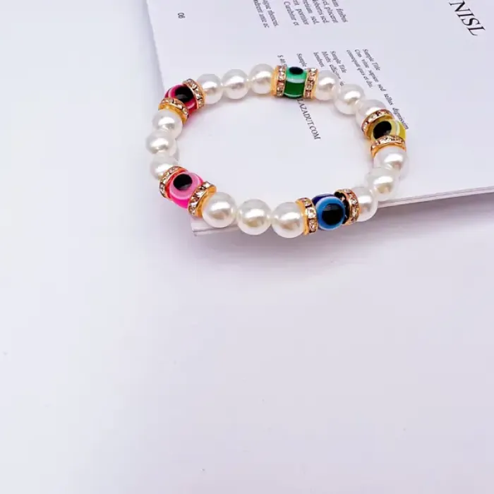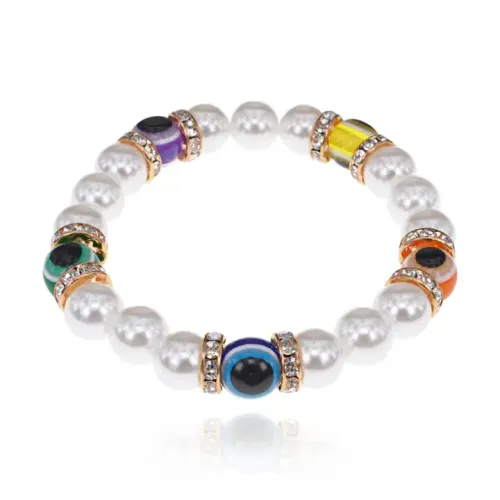 Стрейч-браслет от сглаза с бусинами из искусственного жемчуга и стекла.