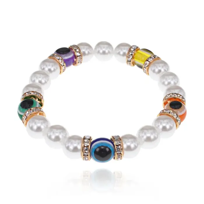 Браслет от сглаза с искусственным жемчугом и стразами, 10мм, разноцветный BS556-02