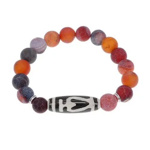 Стрейч-браслет из натурального африканского агата с тибетской бусиной Дзи Бумпа.