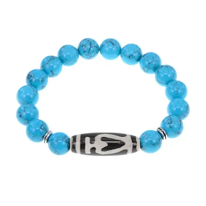 Браслет бусиной Дзи Бумпа и синт.камнем Бирюза BSDS-13-05