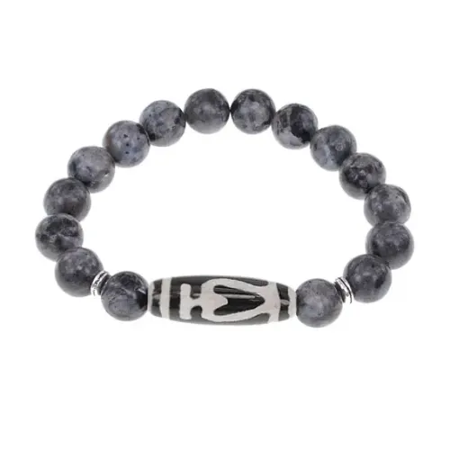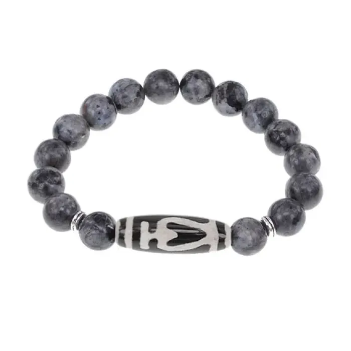 Браслет бусиной Дзи Бумпа и нат.камнем Лабрадор BSDS-13-08