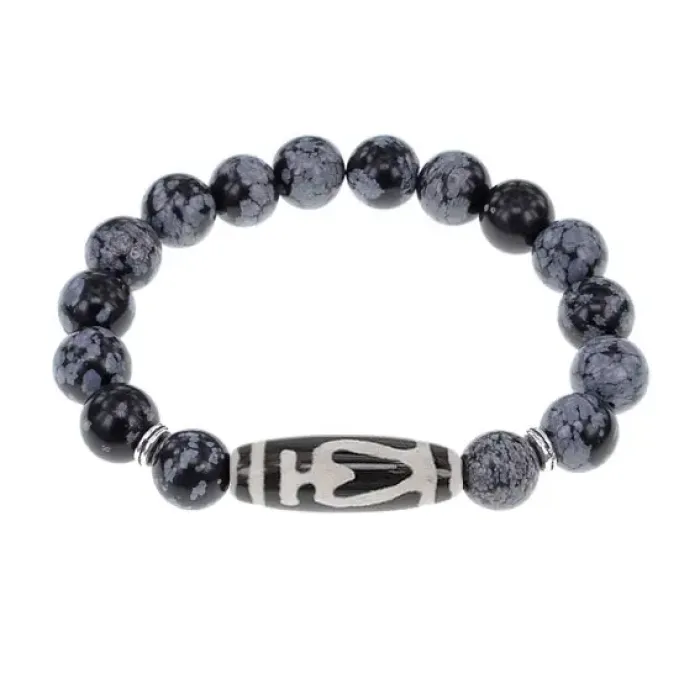 Браслет бусиной Дзи Бумпа и нат.камнем Снежный обсидиан BSDS-13-14