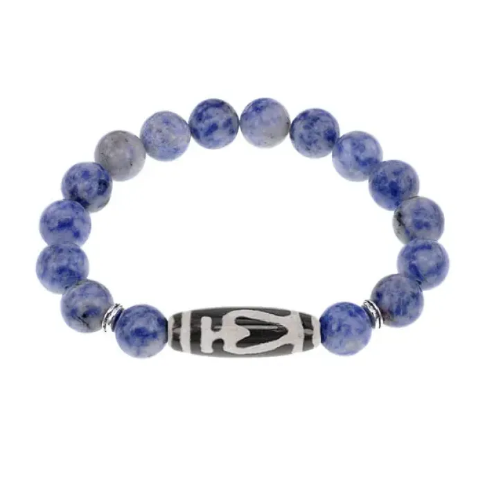 Стрейч-браслет из натурального камня с тибетской бусиной Дзи. Материал: агат и содалит.