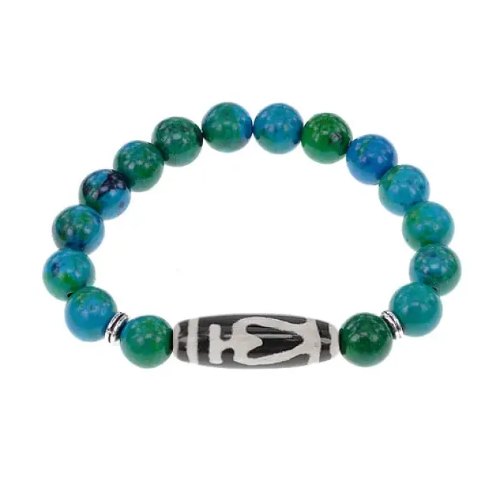 Браслет бусиной Дзи Бумпа и синтетическим камнем Хризоколла BSDS-13-21