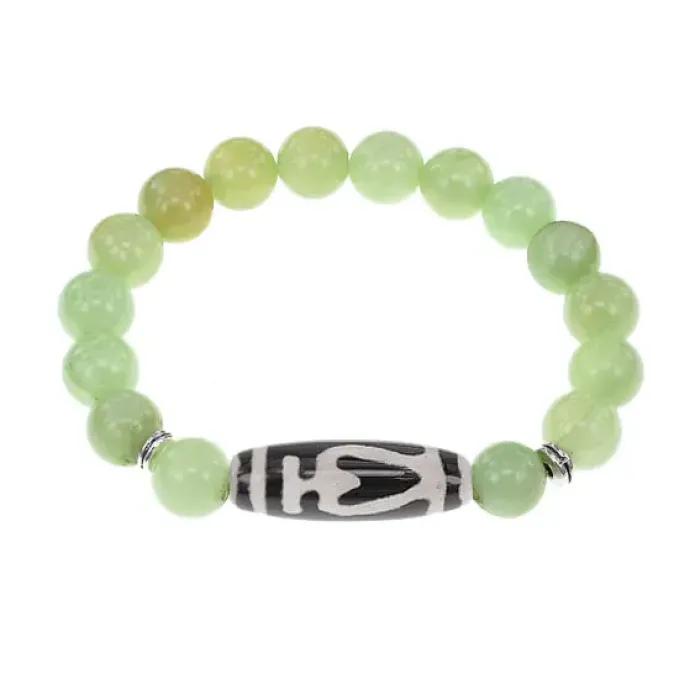 Стрейч-браслет с тибетской бусиной Дзи из агата и синтетическим камнем, имитирующим оникс.