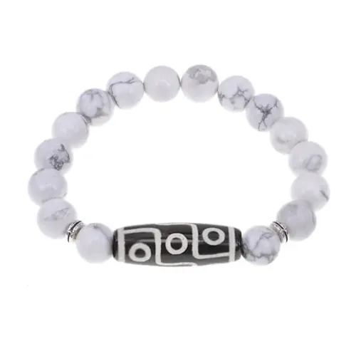 Браслет с 9-глазой бусиной Дзи и нат.камнем Кахолонг BSDS-15-07