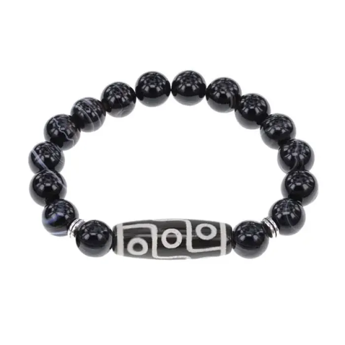 Браслет с 9-глазой бусиной Дзи и нат.камнем Черный агат BSDS-15-23