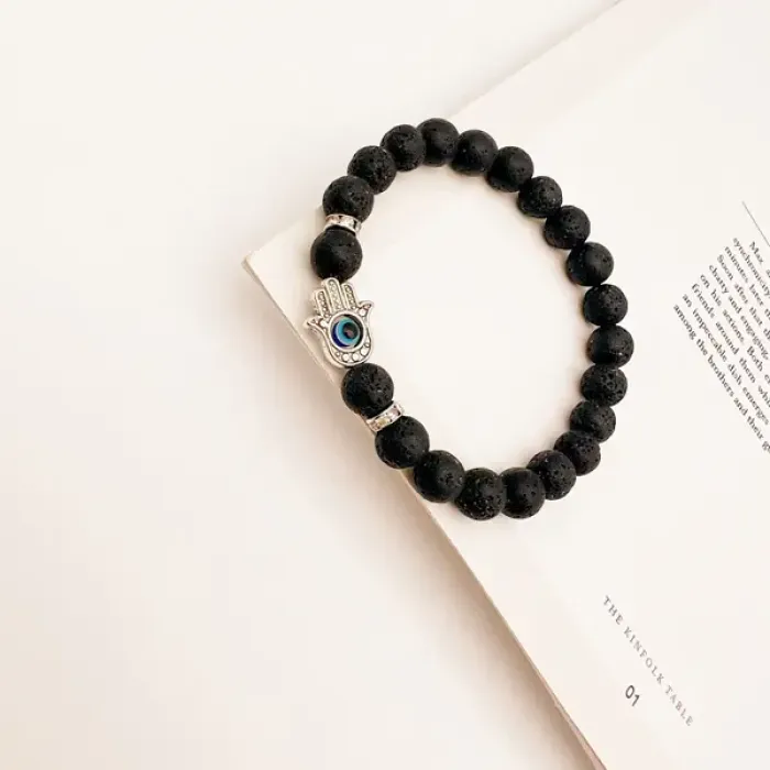 Браслет Хамса от сглаза с лавой, 8мм BJBS-326