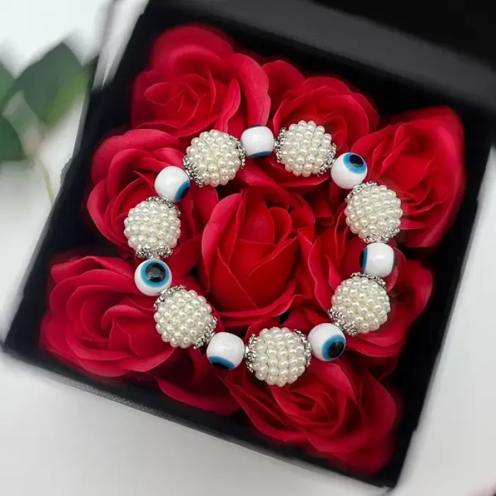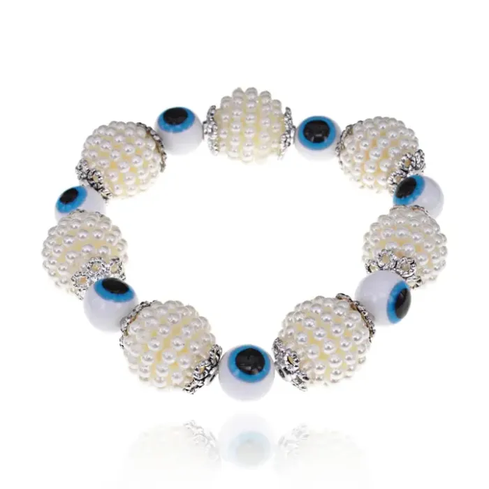 Браслет от сглаза с искусственным жемчугом, 15мм, цвет синий BS562-01