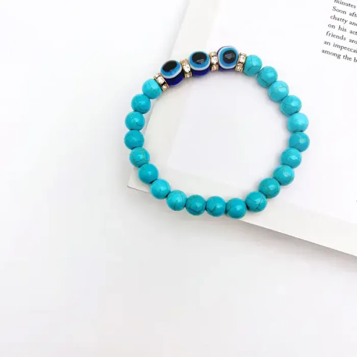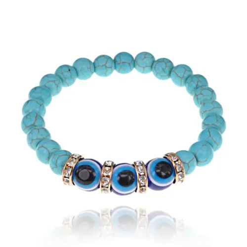 Браслет от сглаза с бирюзой и стразами, 10мм BJBS-327