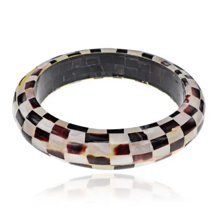 Браслет из дерева и натурального перламутра с шахматным дизайном.