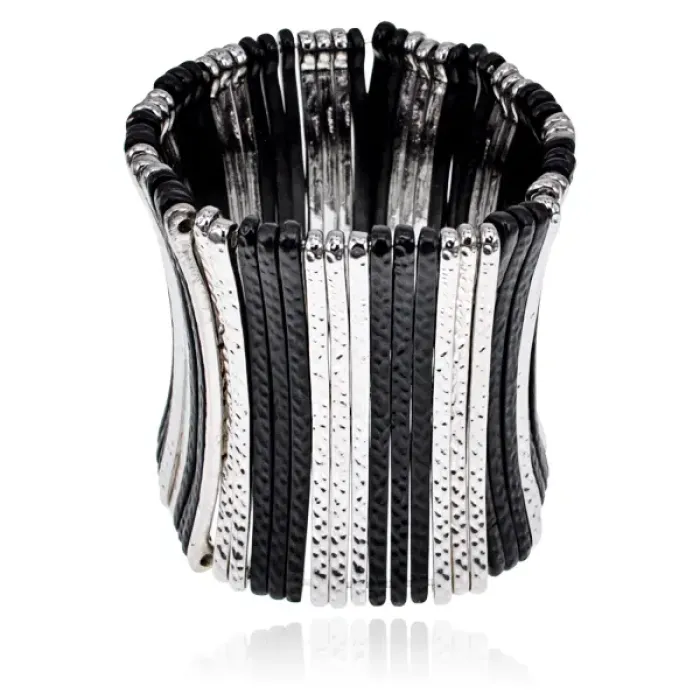 Стрейч-браслет «Зебра» из бижутерного сплава с контрастным дизайном.