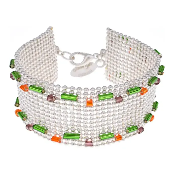 Браслет с бисером, цвет зеленый, оранжевый, фиолетовый UF024-1