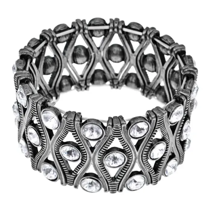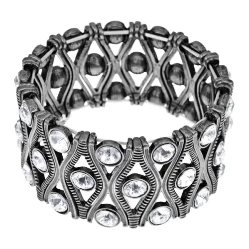 Стрейч-браслет из бижутерного сплава с символом Глаза и стразами.